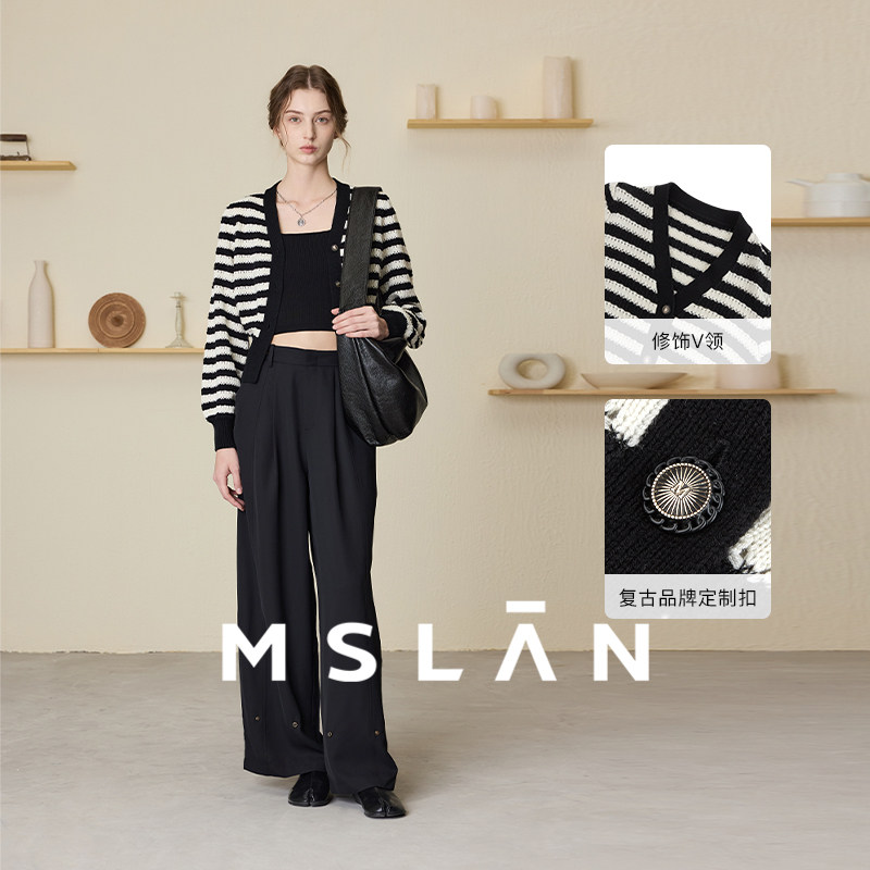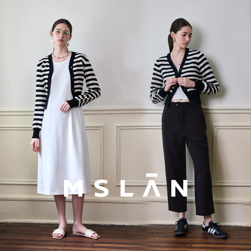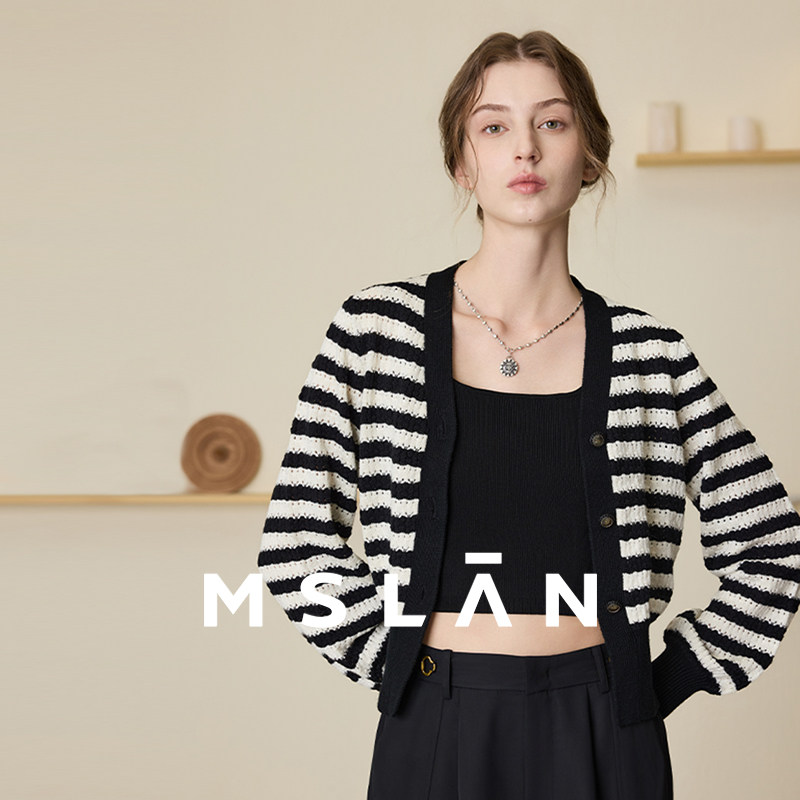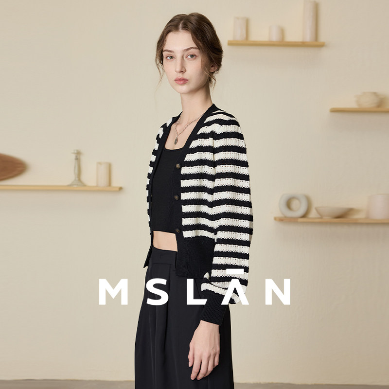 【亲肤舒适】MSLAN撞色小香风条纹短款开衫针织外套女MECM2302