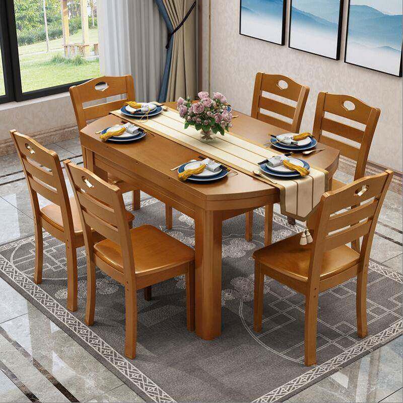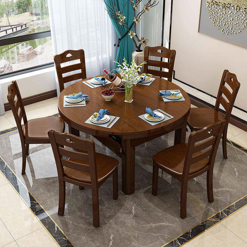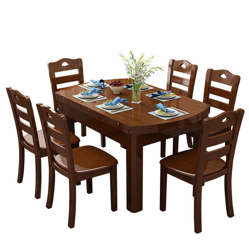 新中式实木餐桌跳台可折叠伸缩橡胶木餐桌一桌六椅餐厅家具
