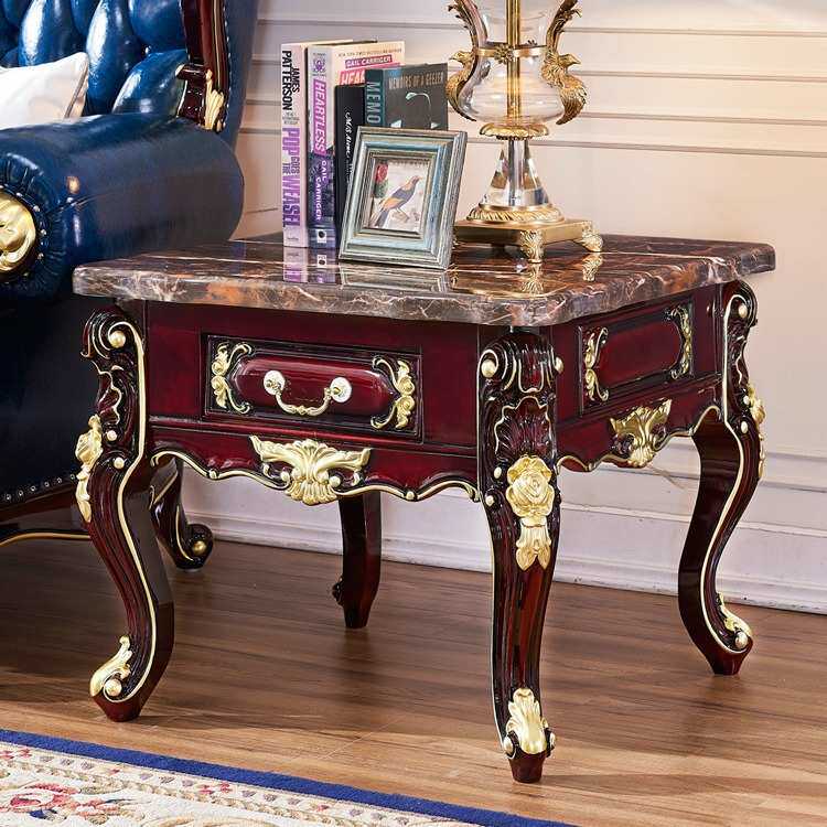 欧式大理石方几沙发边几客厅实木雕花复古红檀迷你收纳储物小角几
