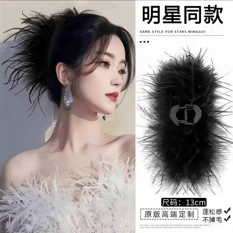 发饰鸵鸟毛高级ins羽毛抓夹大号超仙后脑勺新款毛毛发夹鲨鱼夹女