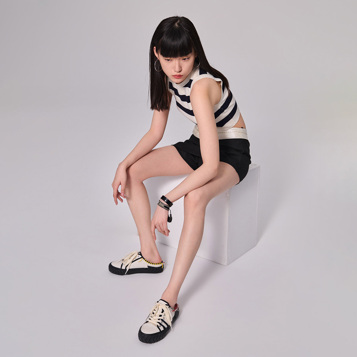 bothTYRES系列春夏时尚凉鞋女款复古帆布半包头拖鞋懒人一脚蹬