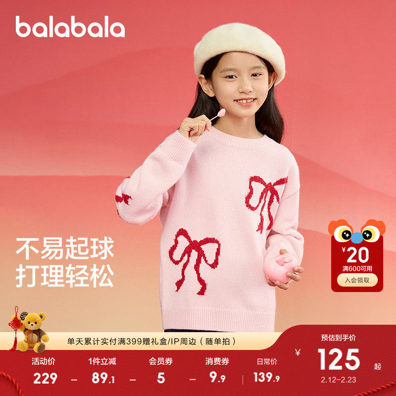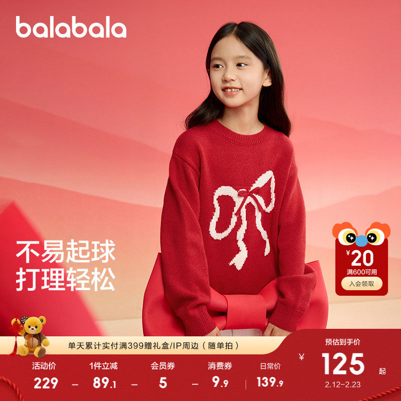 巴拉巴拉童装女童毛衣儿童毛衫2026年新款春秋圆领针织红色拜年服