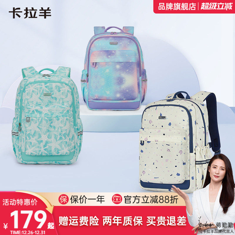 卡拉羊中学生书包减负风琴书包男女生青少年书包小学生书包儿童双肩包男孩大容量女孩防水书包品牌旗舰正品