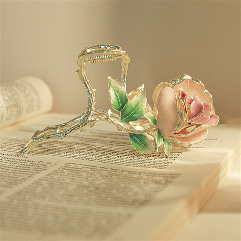 韩版大号玫瑰花金属抓夹优雅气质鲨鱼夹头饰