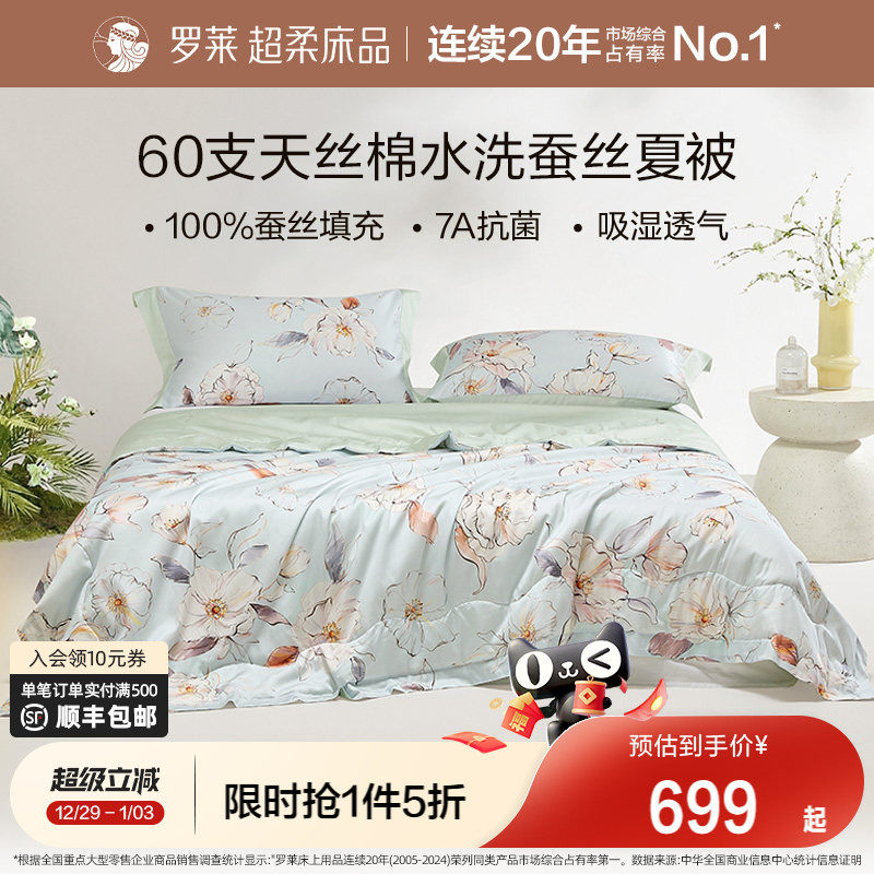 罗莱家纺天丝莱赛尔棉100%蚕丝夏凉被空调被可水洗机洗家用地暖被