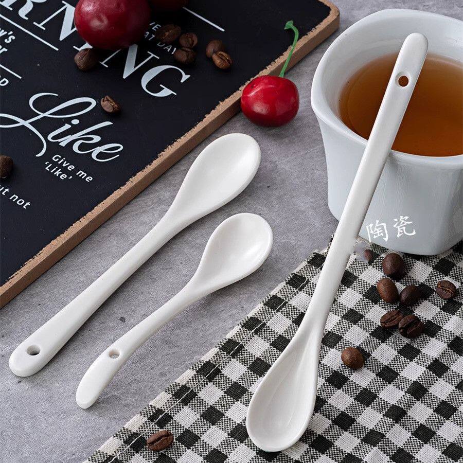 调料勺陶瓷咖啡勺创意长柄婴儿喂养勺蜂蜜搅拌棒甜品小勺子瓷勺