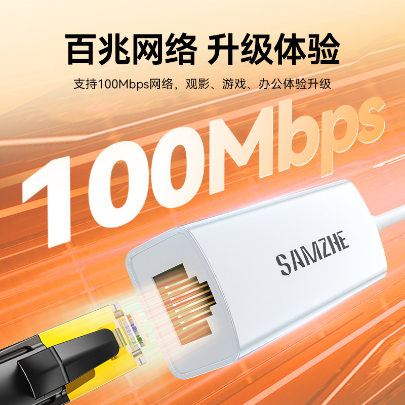 山泽usb转网口mac笔记本电脑typec网线转接口转换器外置千兆网卡rj45宽带连接头适用于惠普联想