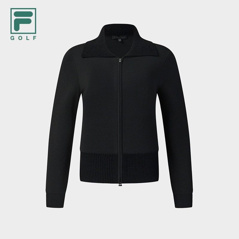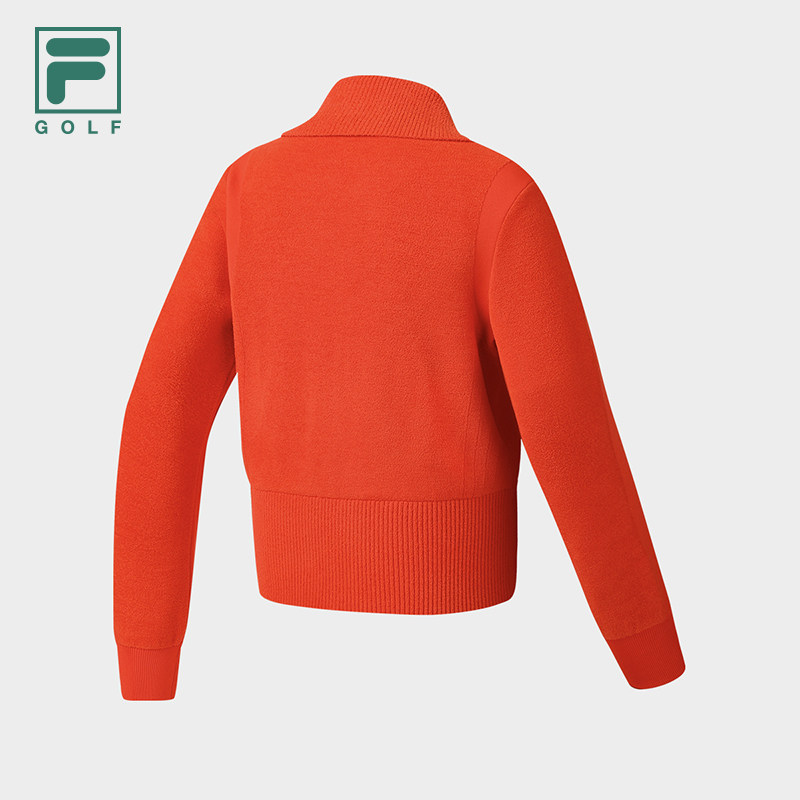 FILA斐乐高尔夫商务运动系列短款翻领编织开衫冬季新款保暖毛衣女