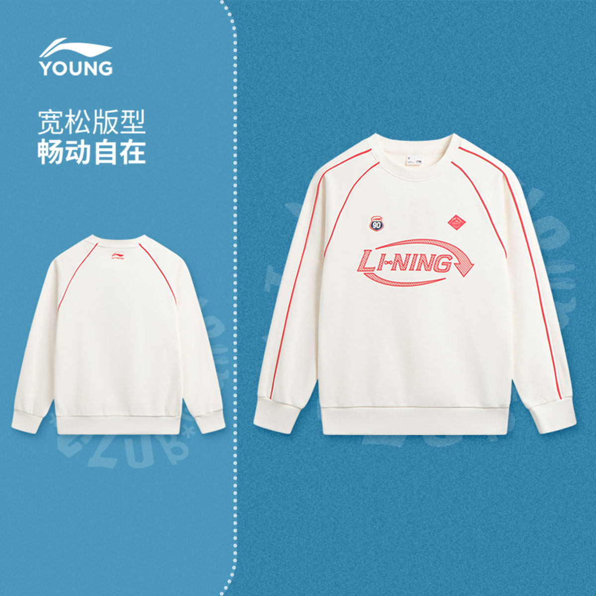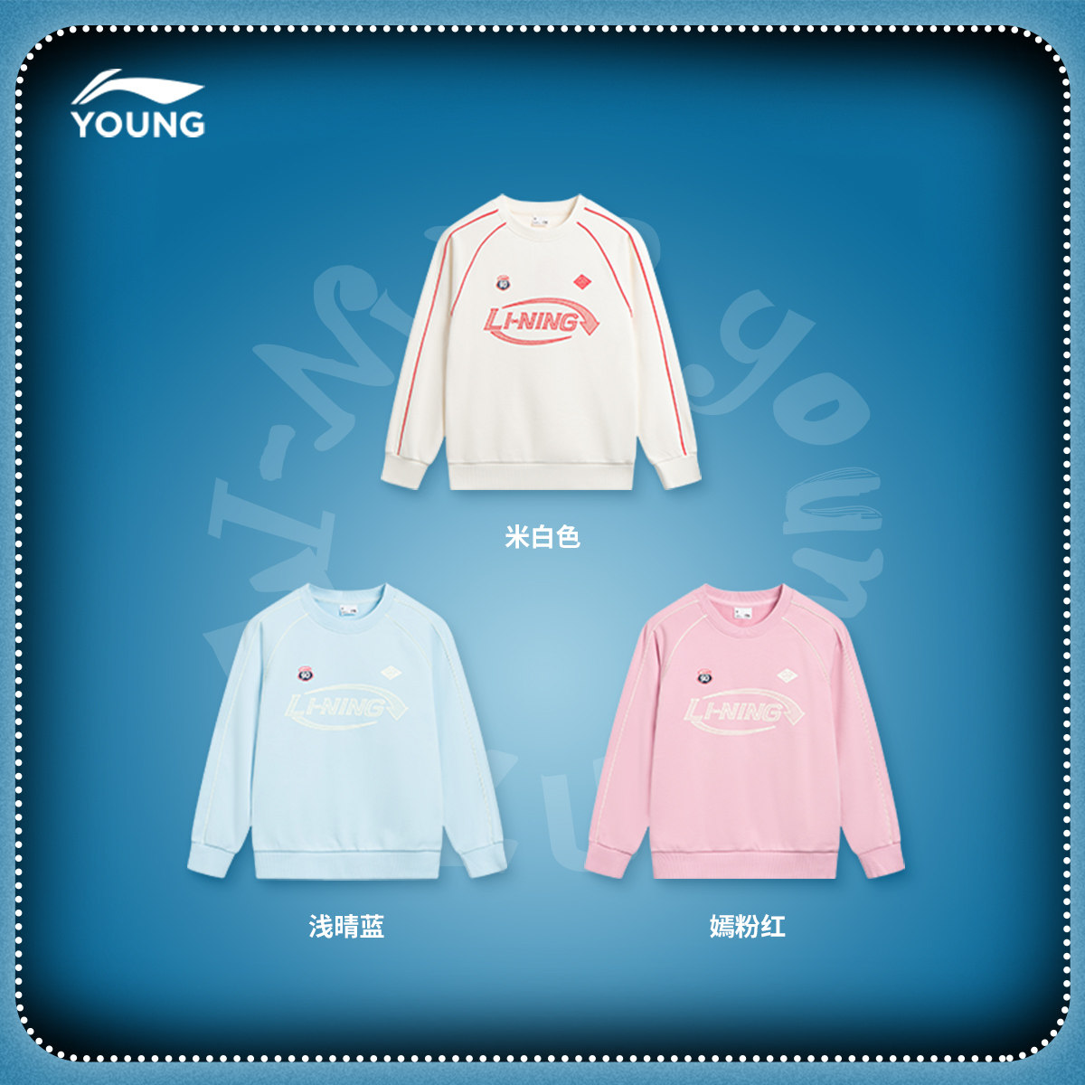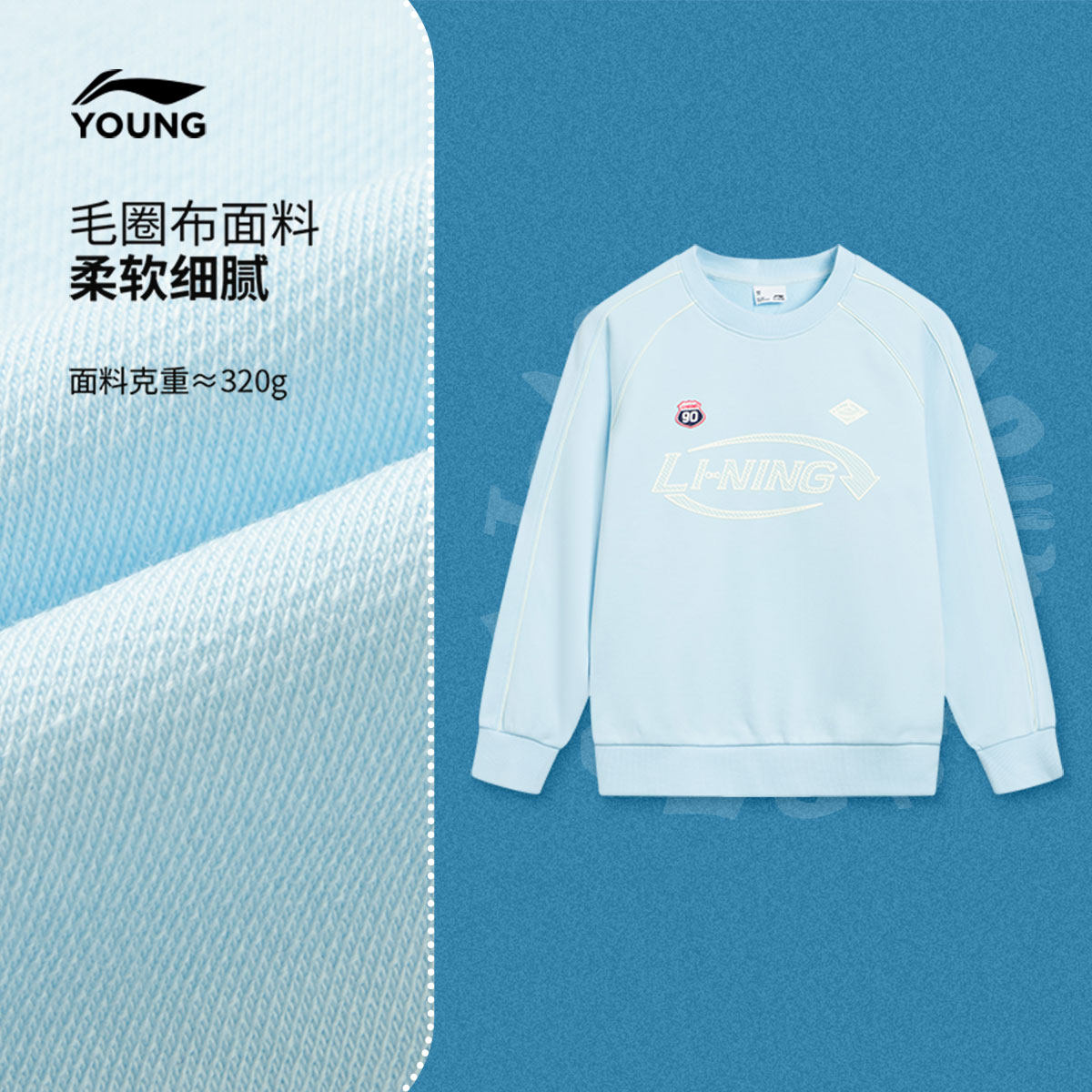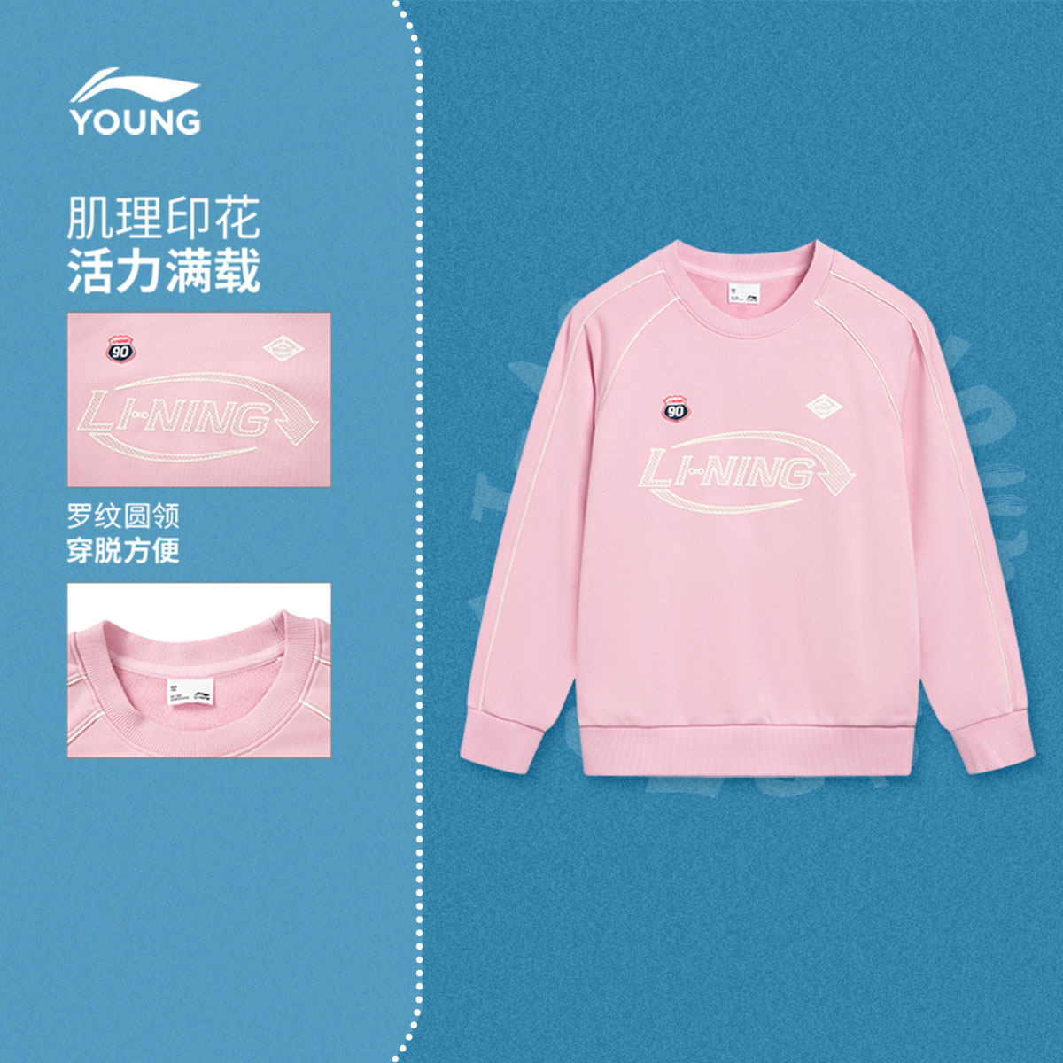 李宁童装卫衣女大童运动生活系列圆领青少年春季休闲毛圈针织童装