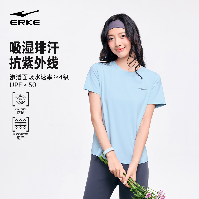 鸿星尔克短袖t恤女夏季新款女士跑步上衣羽毛球运动服冰丝速干衣