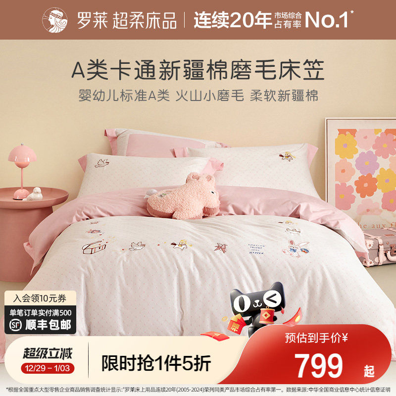 罗莱秋冬新品儿童四件套60支全棉纯棉磨毛加厚套件被套床上用品