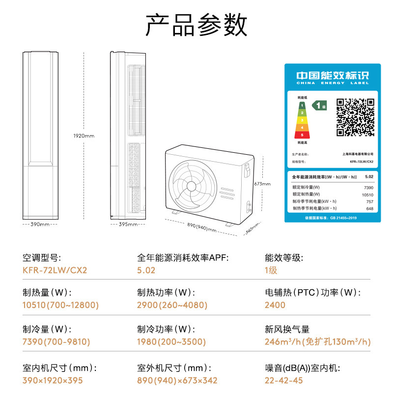 COLMO新象空调CX2柜机一级能效变频3匹家用除醛净呼吸无感风立式