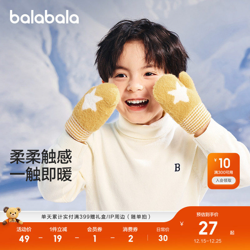 巴拉巴拉儿童手套男童女童半指萌趣可爱卡通造型冬季保暖舒适新款