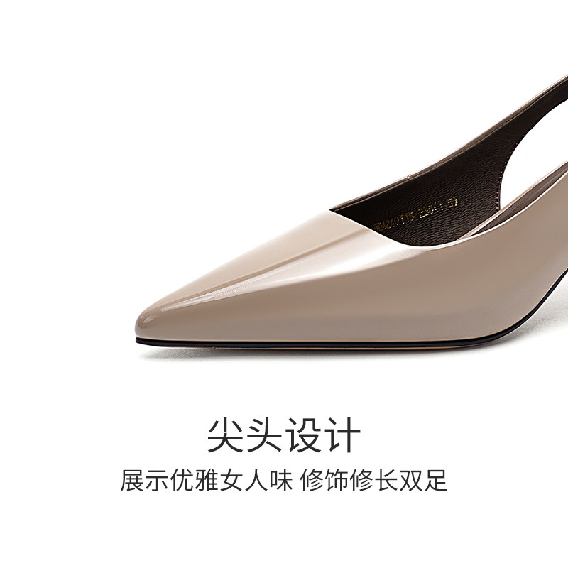 吴大叔2025秋冬时尚后空凉鞋尖头高跟鞋女气质高级不累脚漆皮女鞋