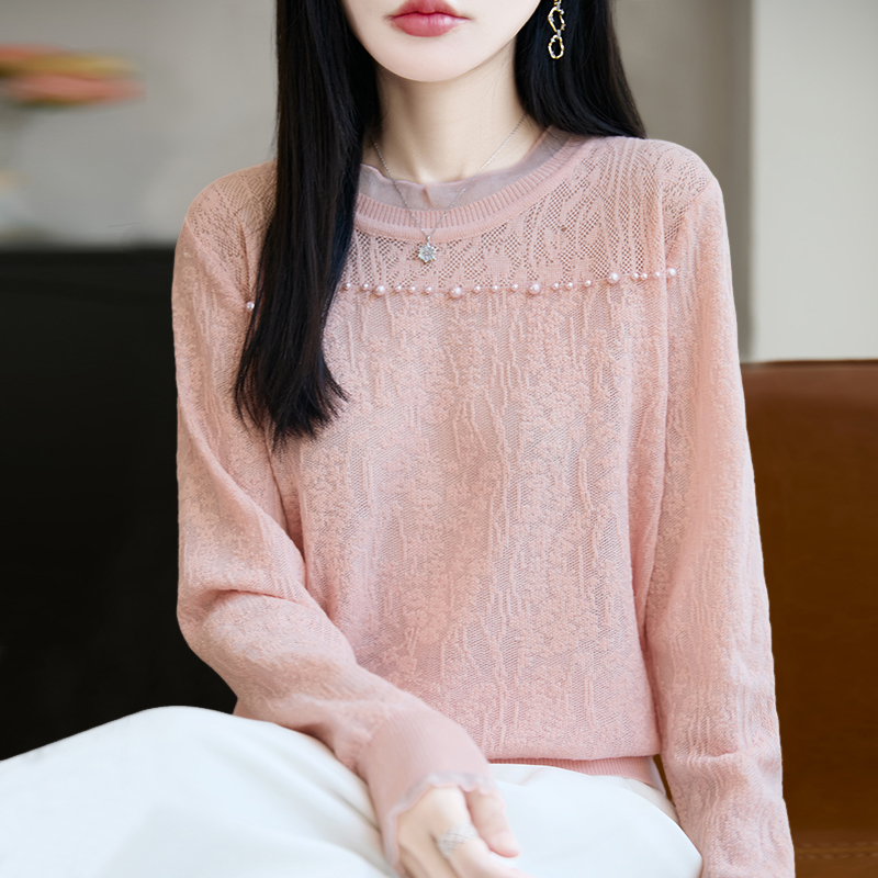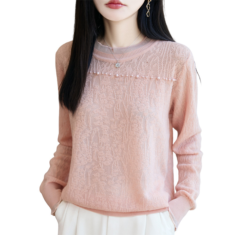 撤标撤柜(A)蕾丝提花针织打底衫春秋款洋气上衣大码女装秋冬毛衣