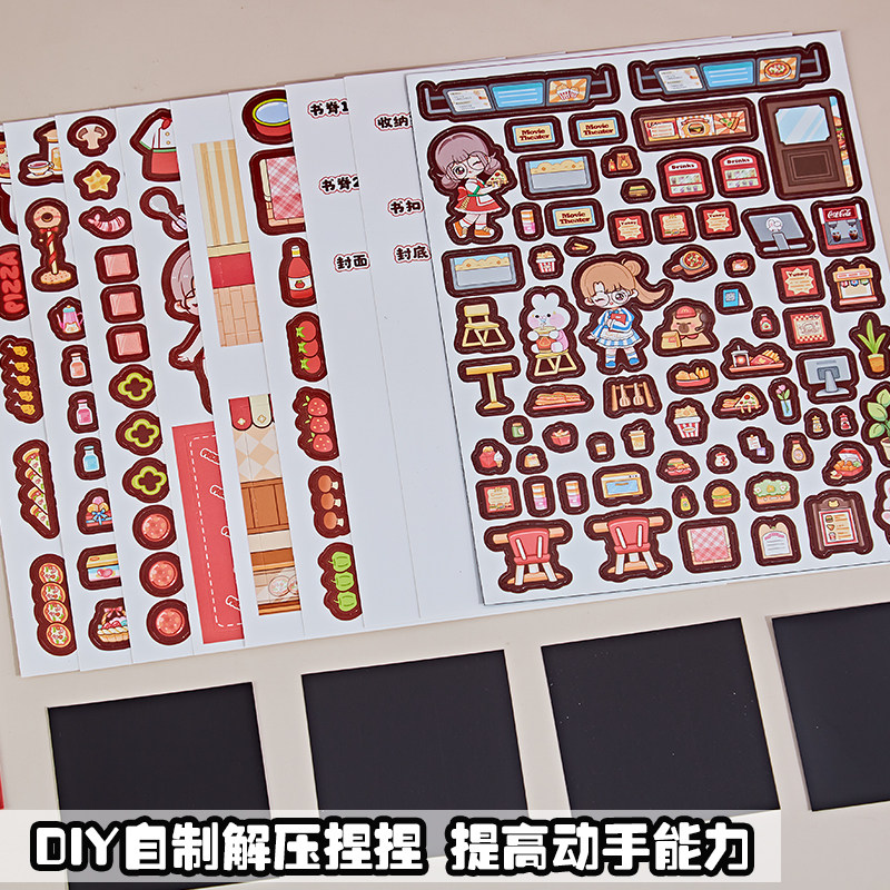 阿软美食主理人diy大号安静书重生之我在披萨店当店长高颜值女孩3到6岁以上手工自制趣味解压捏捏磁力贴纸本