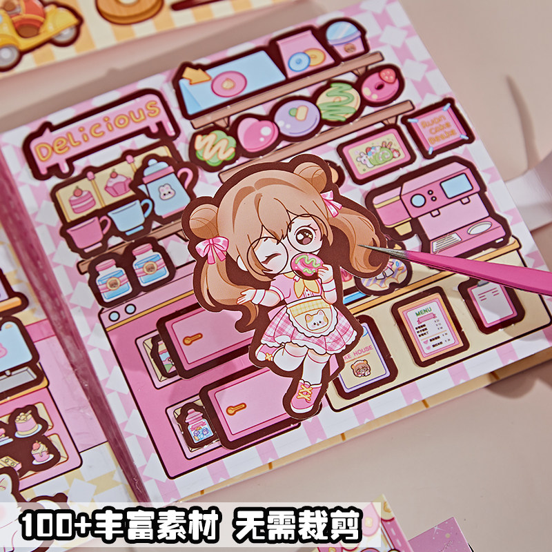萌崽新款学霸学渣果冻贴纸安静书儿童免裁剪手工粘贴DIY女孩趣味玩具