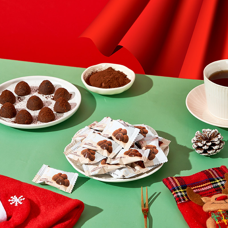 松露型巧克力圣诞礼盒高颜值零食独立包装代可可脂桶装小包装精选