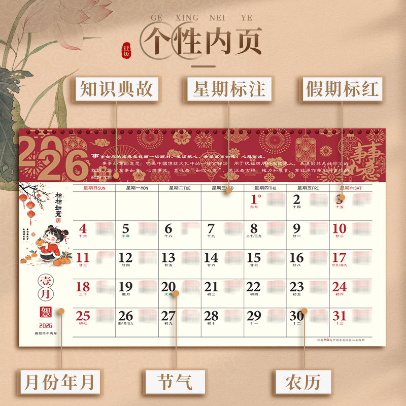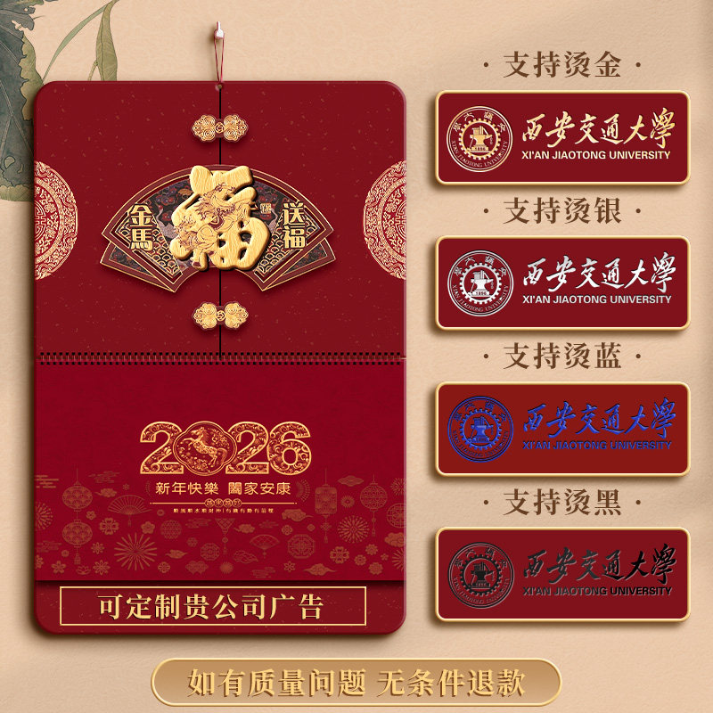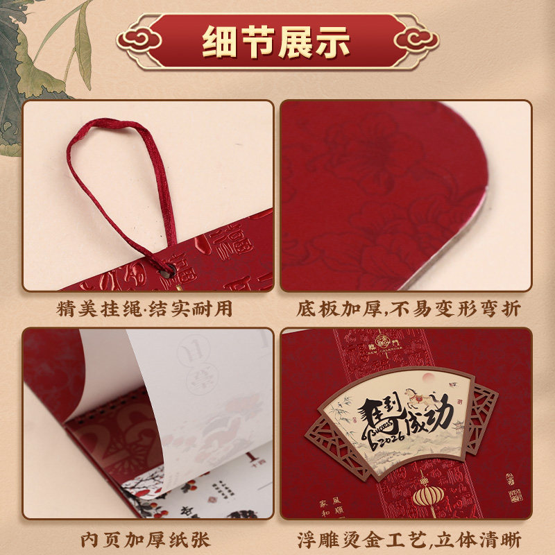 大四开新款2026年福字挂历定制公司广告马年大日历手撕创意简约月历家用挂墙式吊牌订做大号加厚中国风万年历