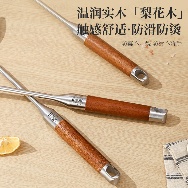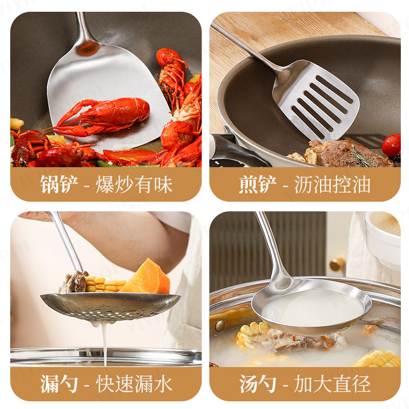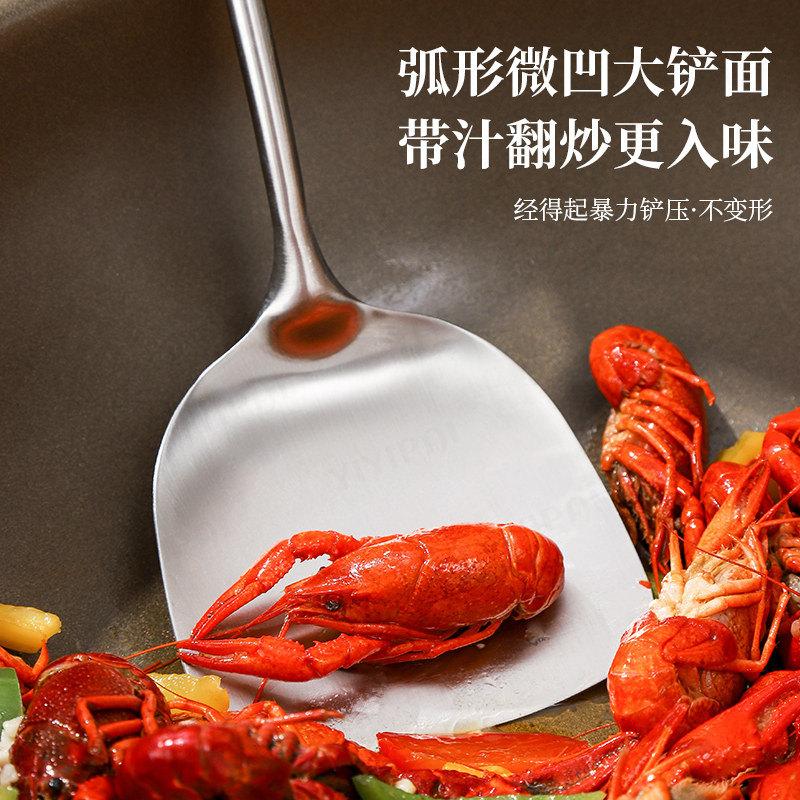 316L不锈钢锅铲食品级花梨木加厚炒菜铲子家用木柄炒菜汤勺铁锅铲