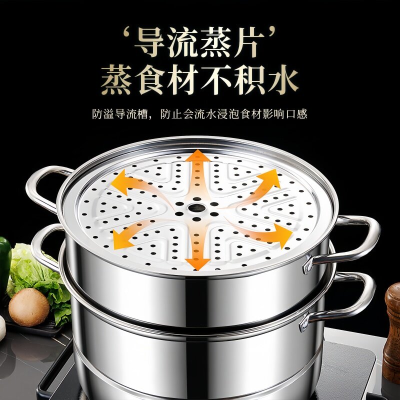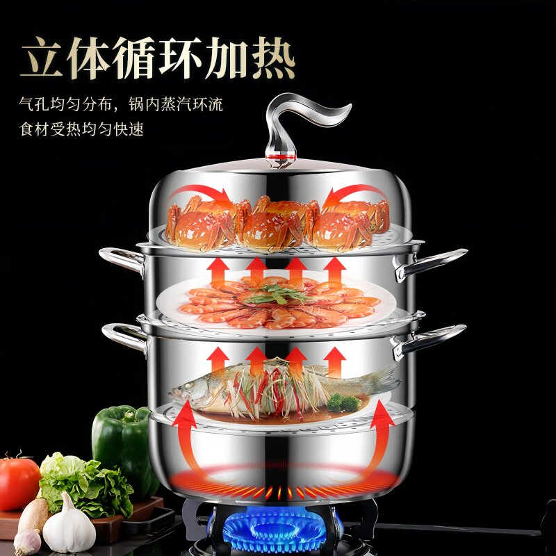 马尾蒸锅家用不锈钢加厚蒸笼多层小笼屉煮炖专用三层食品级大容量
