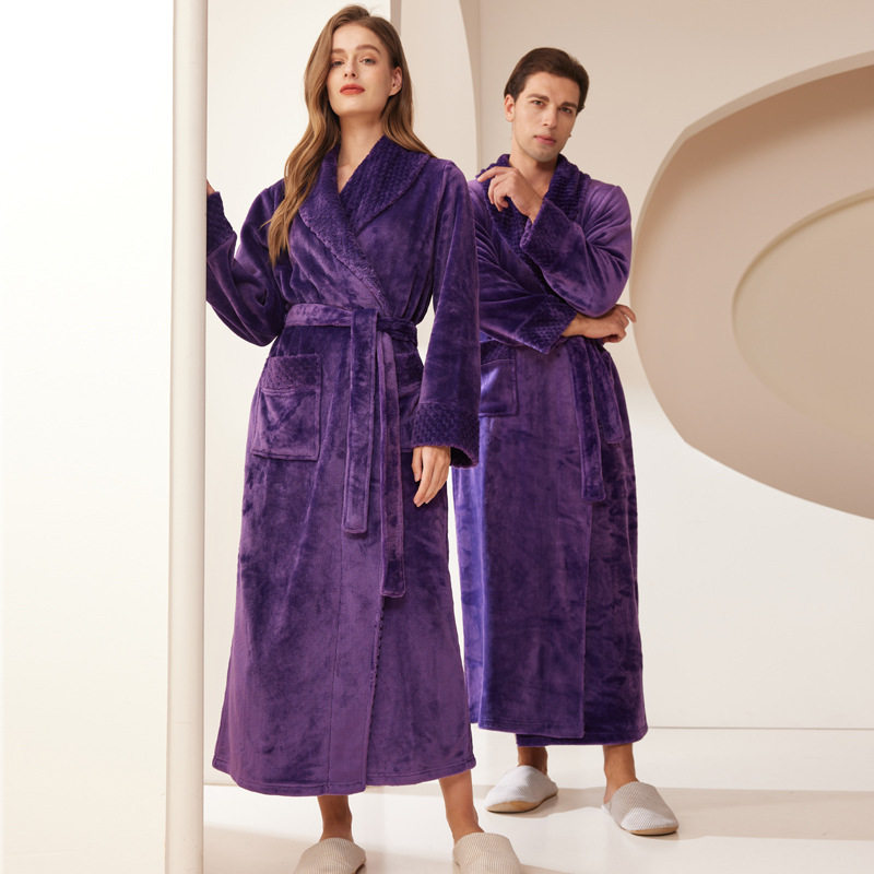 睡袍女秋冬长款珊瑚绒加厚加绒男士浴袍冬季法兰绒睡衣超长到脚踝