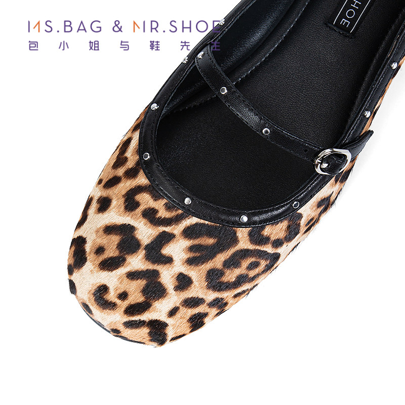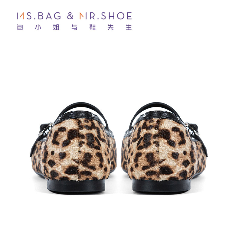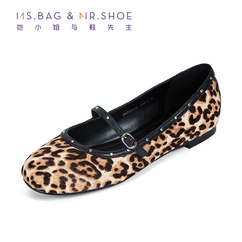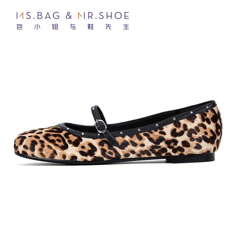 包小姐与鞋先生2025年秋季新款铆钉豹纹印花平底玛丽珍鞋女253123
