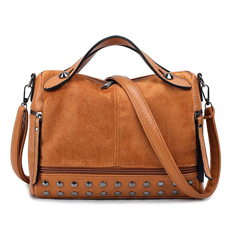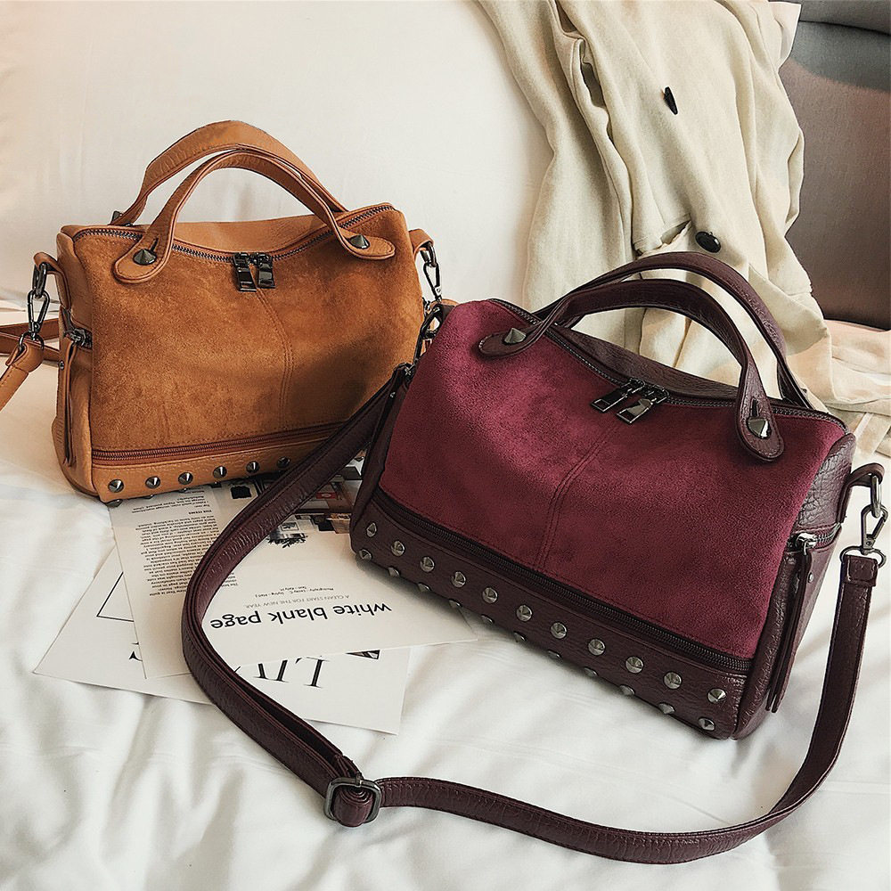 港风小包包女新款磨砂手提单肩包个性铆钉斜挎包水桶波士顿包