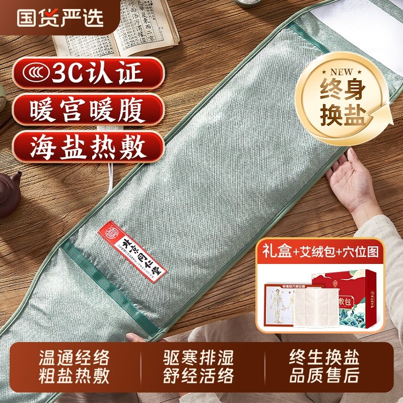 同仁堂礼盒粗盐海盐理疗袋子热敷包艾草艾灸电加热肩颈椎腰部盐包