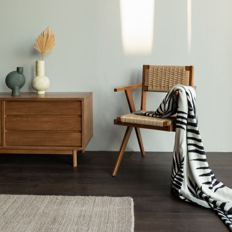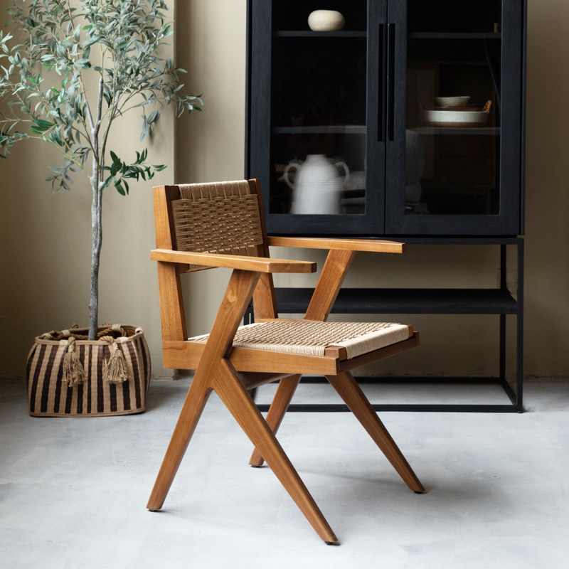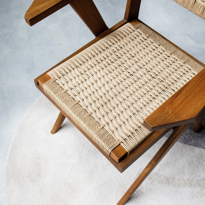MountainLiving进口柚木家具实木餐椅纸绳餐桌椅子单椅中古风复古