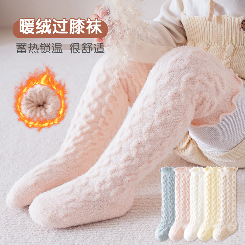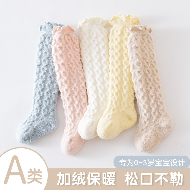 宝宝袜子冬季加绒加厚保暖新生儿婴儿护膝不勒腿儿童袜
