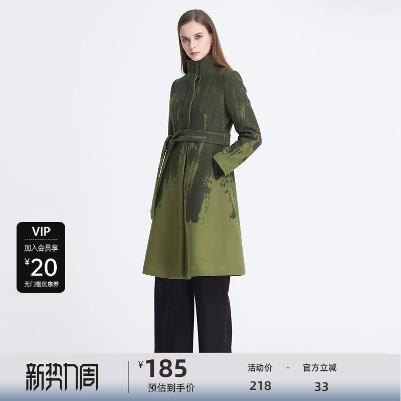悦戎带里衬山羊绒大衣女中长款秋冬羊毛呢外套女加厚101801大衣
