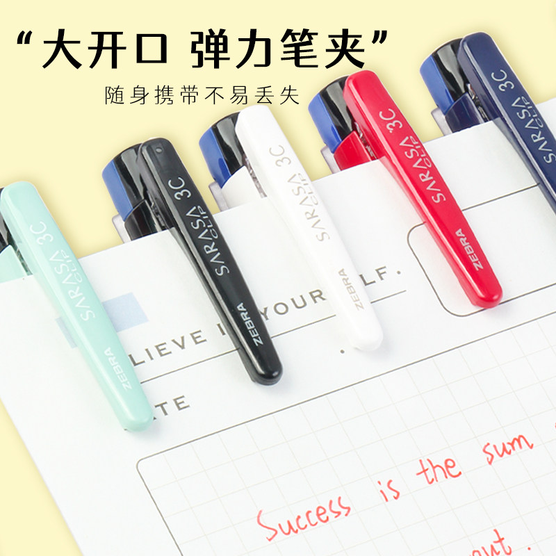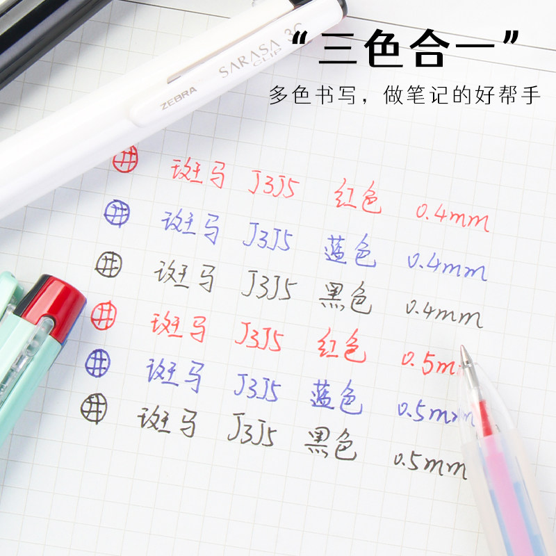 新款ZEBRA斑马三色中性笔J3J5模块笔多功能笔黑红蓝多色水笔三合一0.5mm大嘴笔夹3色笔芯多功能中性笔学生
