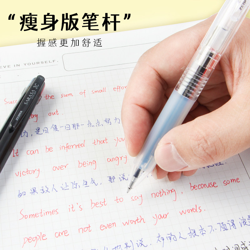 日本ZEBRA斑马官方旗舰店官网JJ77中性笔不易被荧光笔晕染按动式ins日系中小学生黑红色签字笔笔记可换替笔芯