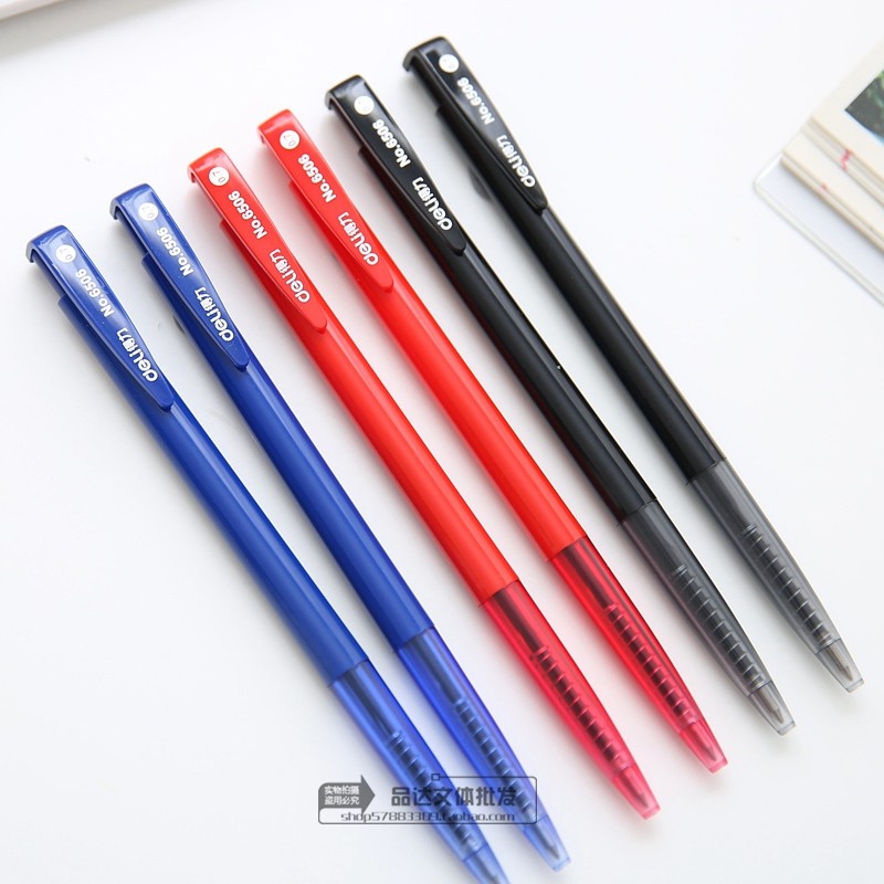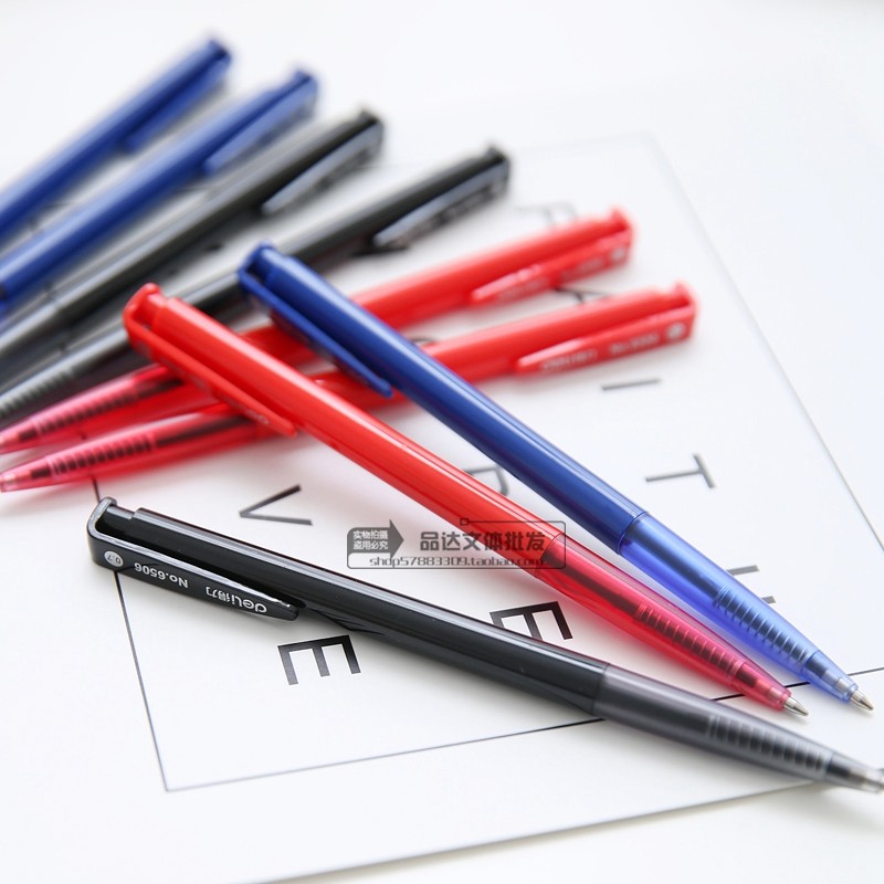 20支价 得力文具圆珠笔办公用品走珠笔学生油笔按动0.7mm黑红蓝色