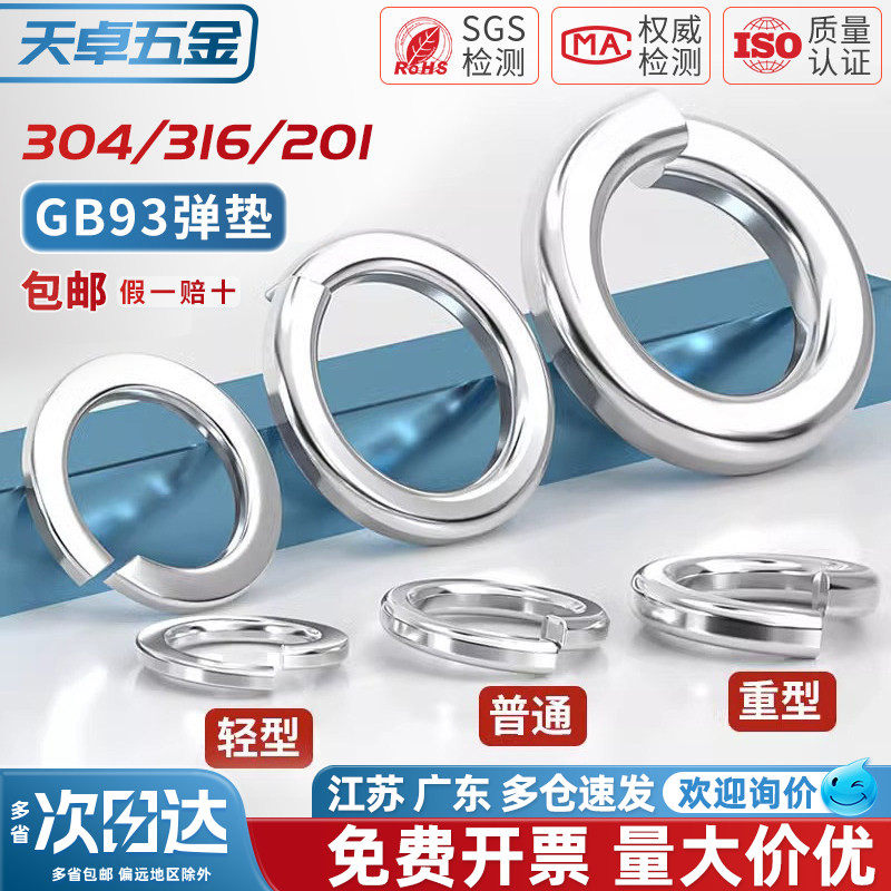 304/201/316不锈钢弹垫开口弹簧垫圈性垫片重型轻型加厚华司大全