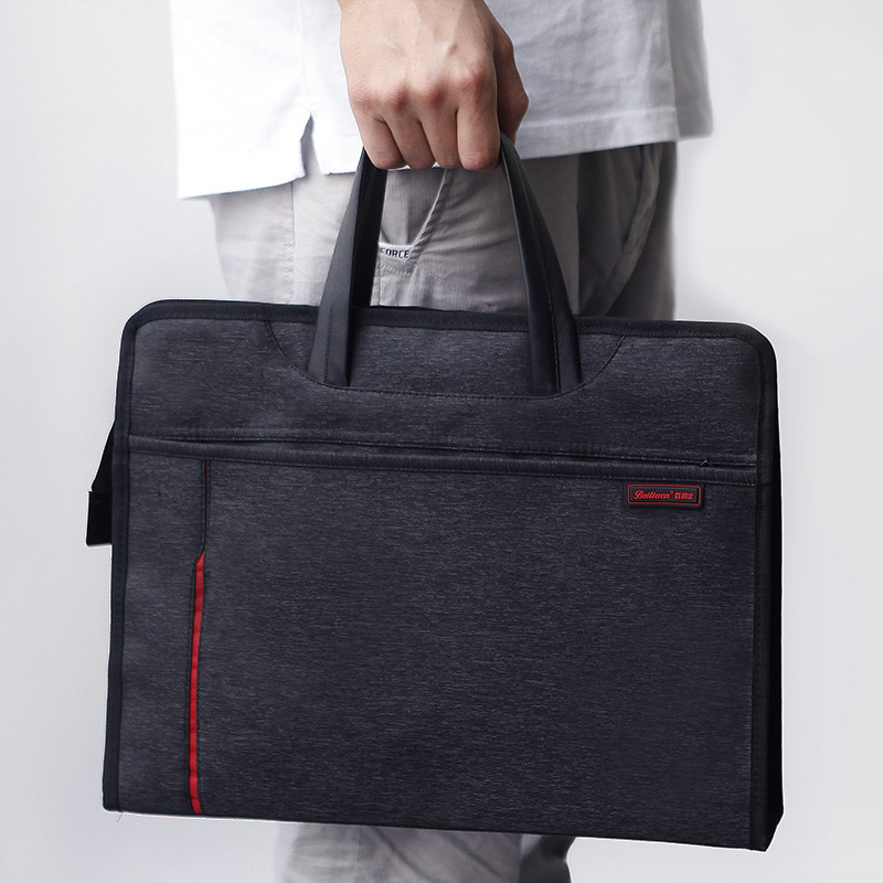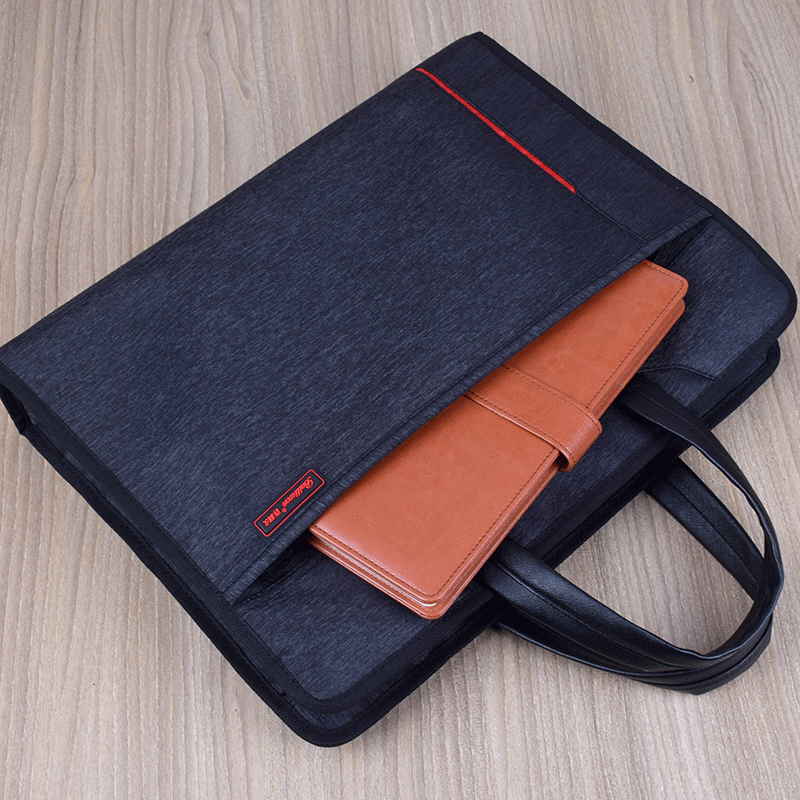 百利文手提公文包黑色牛津布文件袋男士上班会议多层拉链大容量资料档案袋男女帆布简约商务公文袋文件包定制