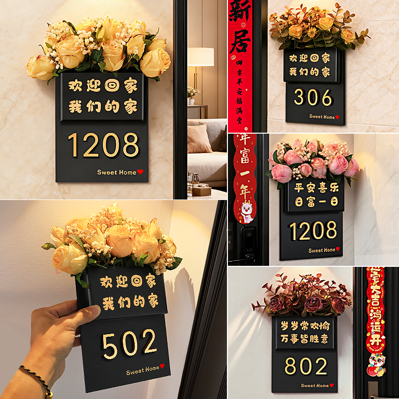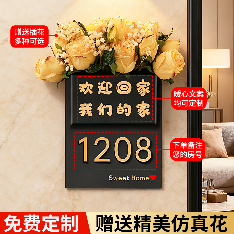 门牌号高级感轻奢创意入户仪式感欢迎回家家门口磁吸感应灯2026新款奶油风入户门号码牌家用装饰挂牌挂件定制