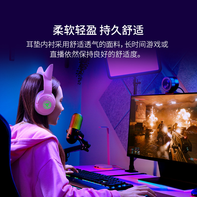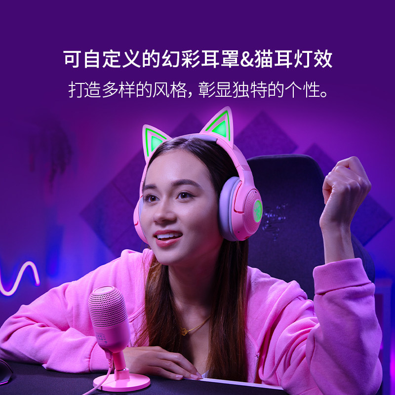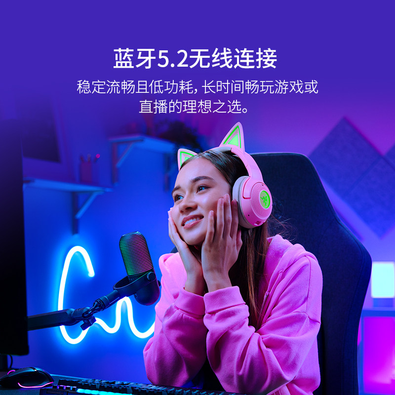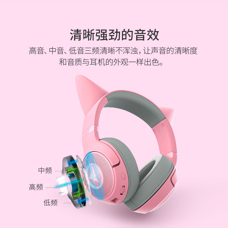 Razer/雷蛇北海巨妖萌猫版V2粉晶BT头戴式电脑手机蓝牙无线耳机麦