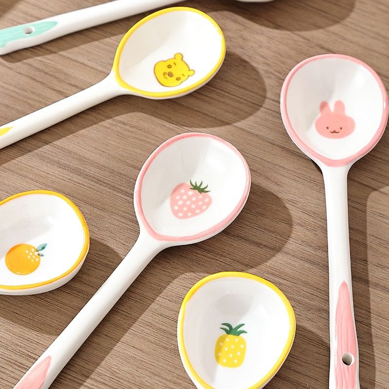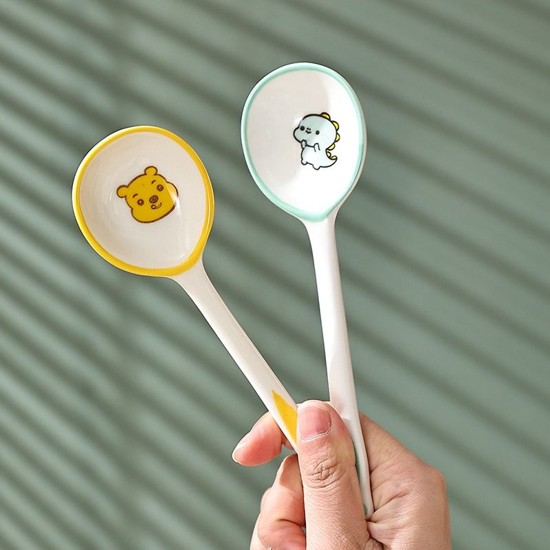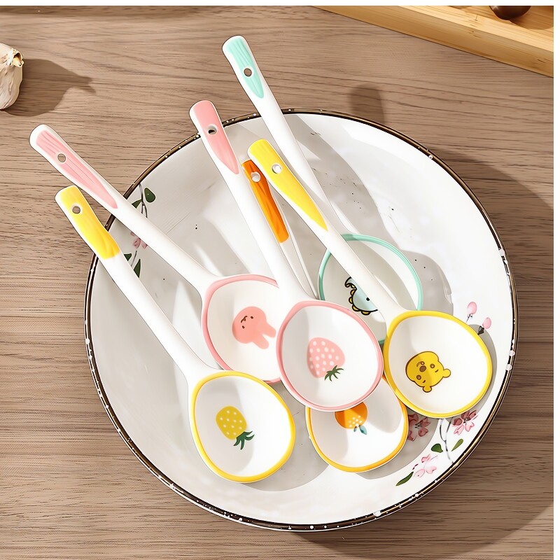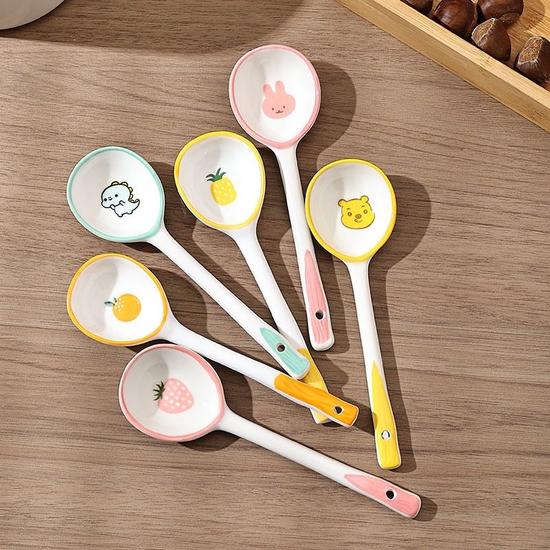 陶瓷勺子ins可爱儿童吃饭汤匙瓷调羹小勺子长柄汤勺家用商用搅拌