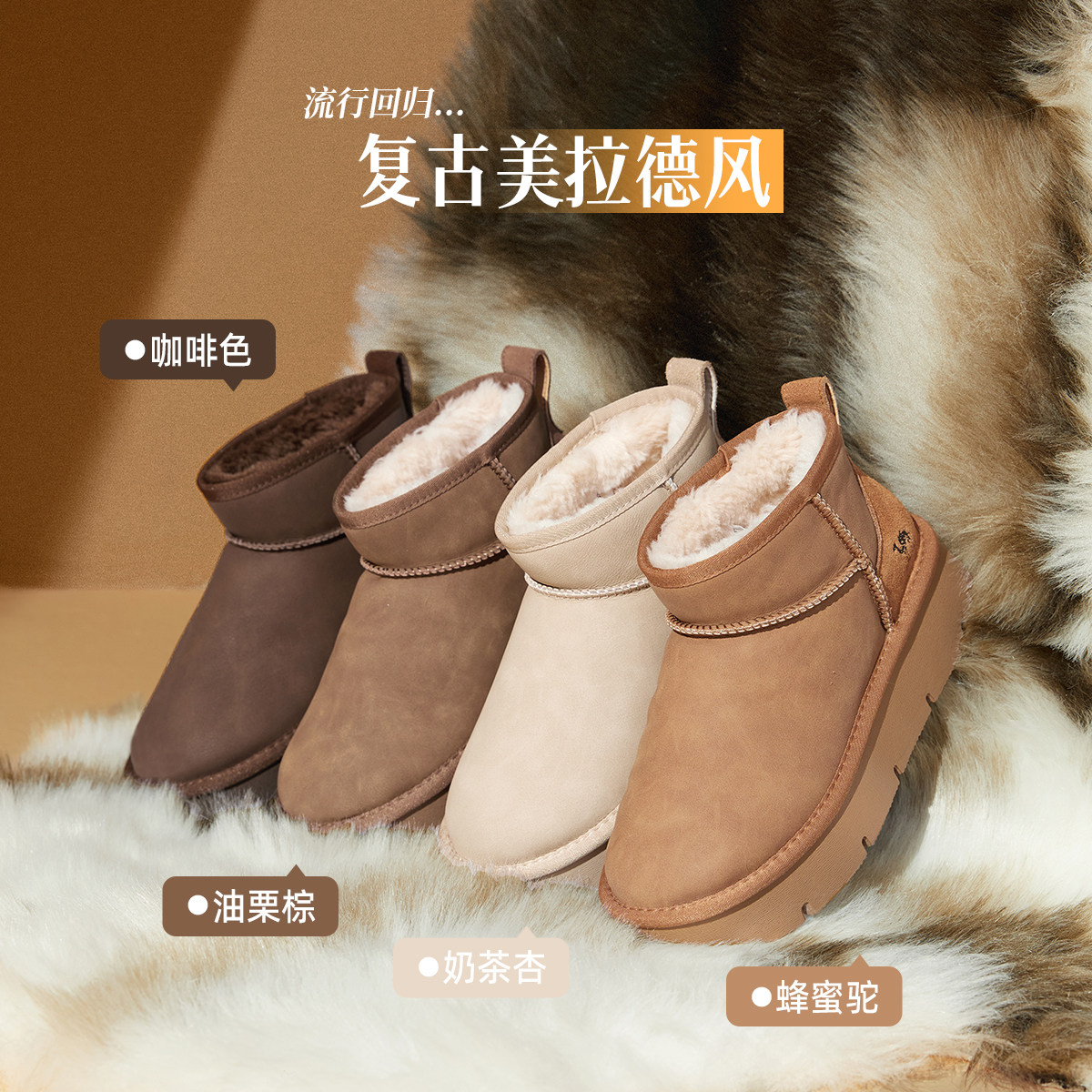 骆驼雪地靴女鞋2025冬季新款厚底短靴子女加绒保暖小暖炉加厚棉鞋