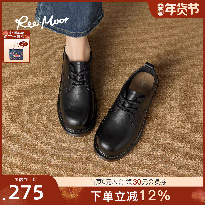 REEMOOR睿慕2025冬季圆头深口单鞋厚底通勤小皮鞋英伦风乐福鞋女