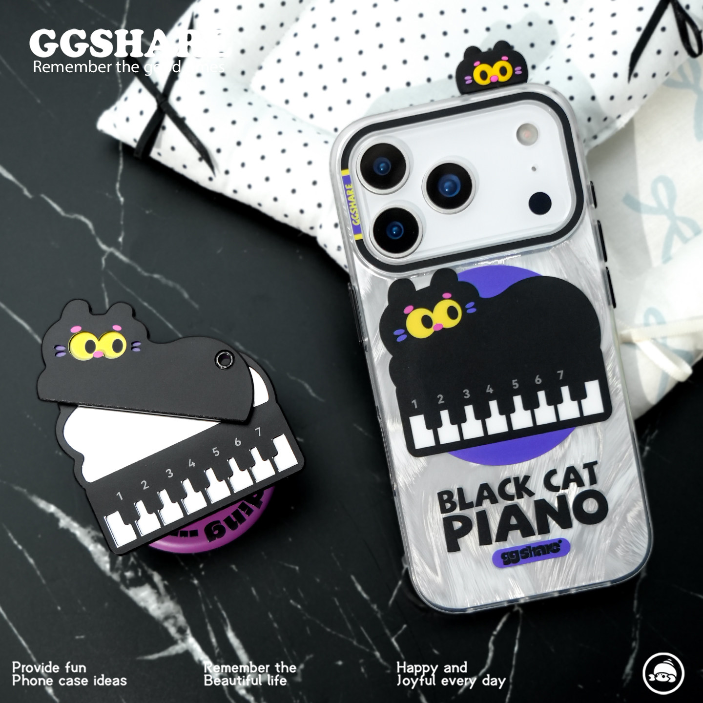 寄居蟹原创钢琴猫iphone17手机壳17promax 适用苹果手机壳16pro磁吸支架新款15手机壳磨砂防摔猫头化妆镜设计