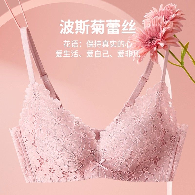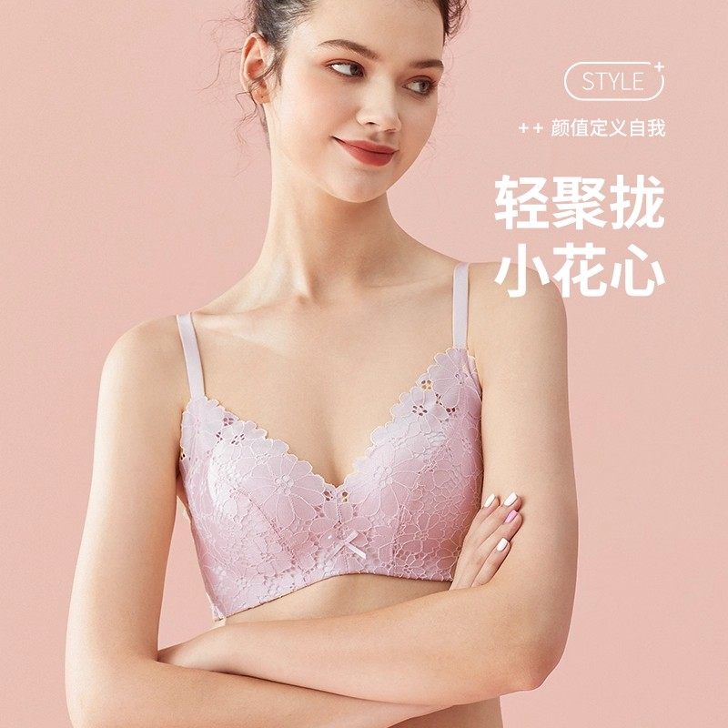 都市丽人小花心蕾丝无钢圈小胸聚拢显大蜂巢透气杯内衣裤文胸套装