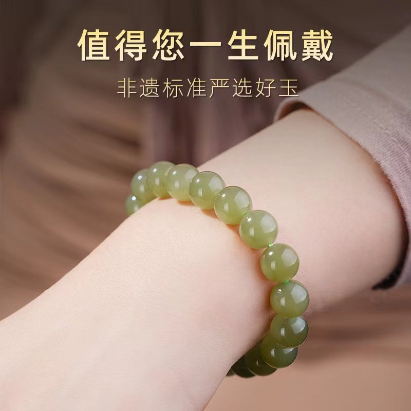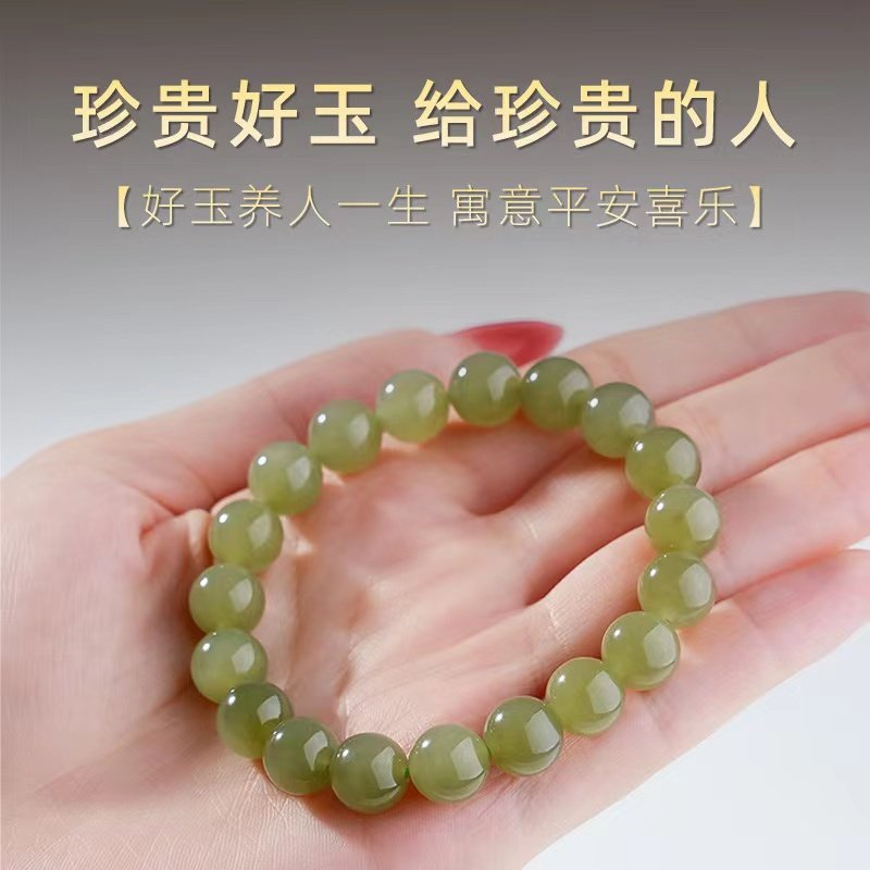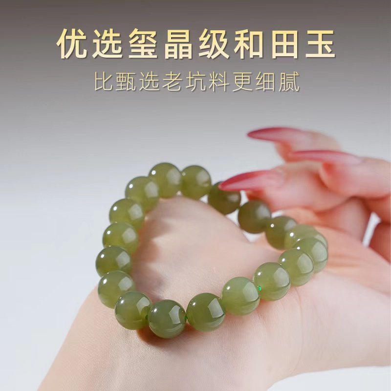 oein天然和田玉手串女湖水绿和田玉玉石珠子手链假一赔十籽料