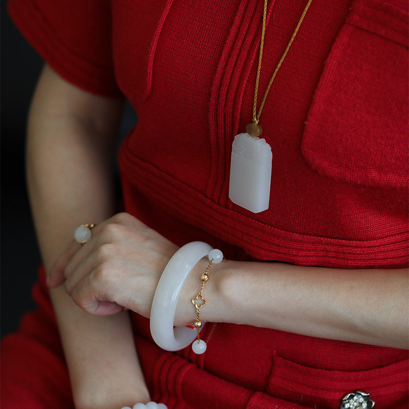周六福和田玉吊坠平安扣玉坠项链玉石白玉挂坠男女款圣诞礼物