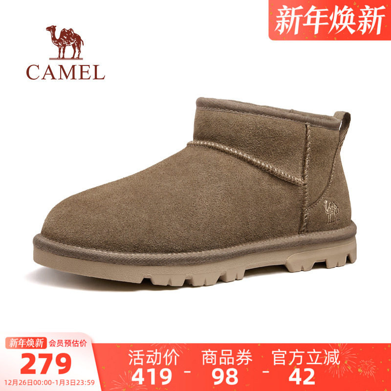 骆驼男鞋2025冬季新款加绒保暖皮毛一体靴子男女同款休闲雪地靴