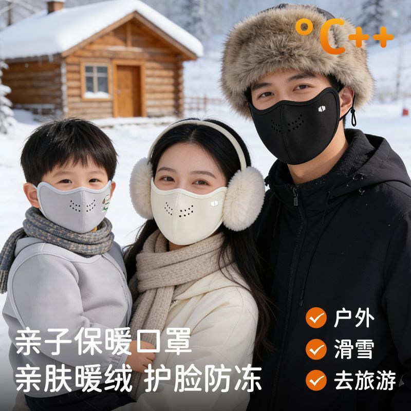 保暖口罩冬季男女成人儿童2025新加绒立体透气防风防寒东北防冻脸