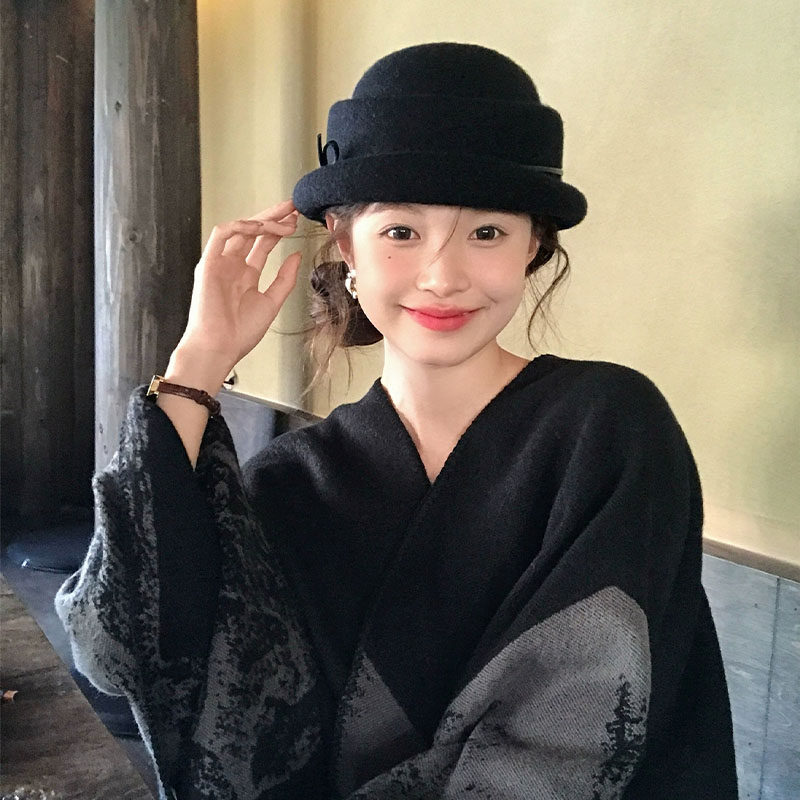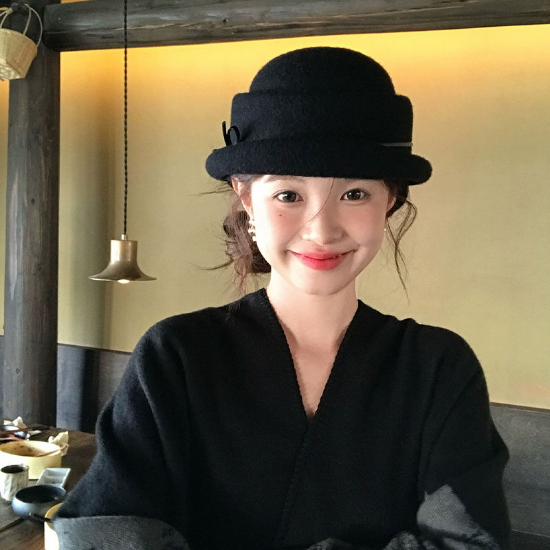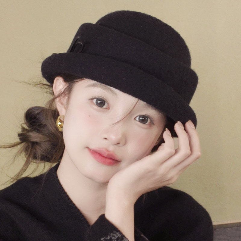 复古黑色气质礼帽2025新款秋冬法式高级百搭显脸小圆顶盆帽渔夫帽