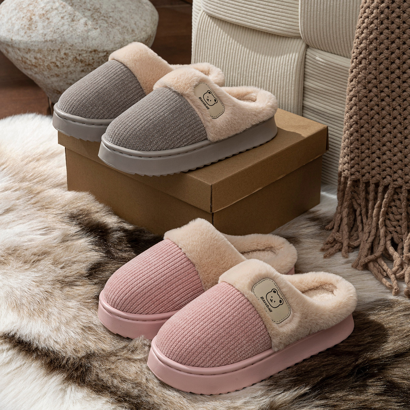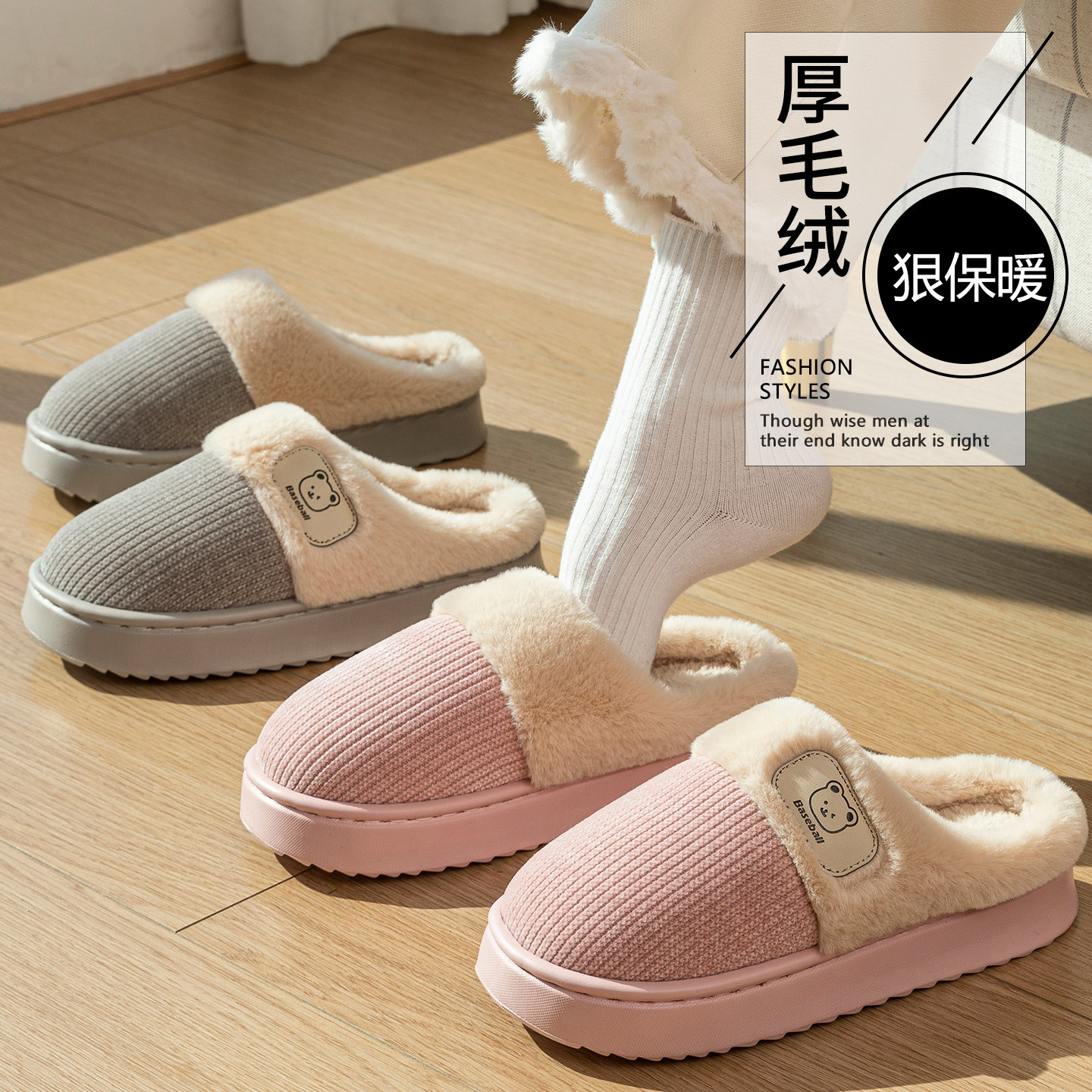 赛眸居家棉拖鞋女冬季新款室内静音防滑加厚底毛绒保暖棉拖鞋男士
